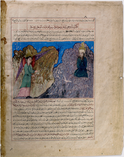 “Muhammad’s Call to Prophecy and the First Revelation”, Folio from a Majma’ al-Tavarikh (Compendium of Histories). Dated to 1425 CE.